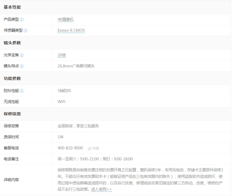 參數(shù) [品牌] 索尼 [型號(hào)] FDR-AX45